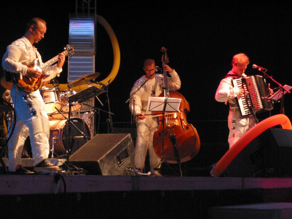 DIE GUTE BAND als Hafenkaschemmen-, Astronauten- oder Krankenhausband spielte urige Lieder und Chansons aus dem Popmusikarchiv passend zum Thema.