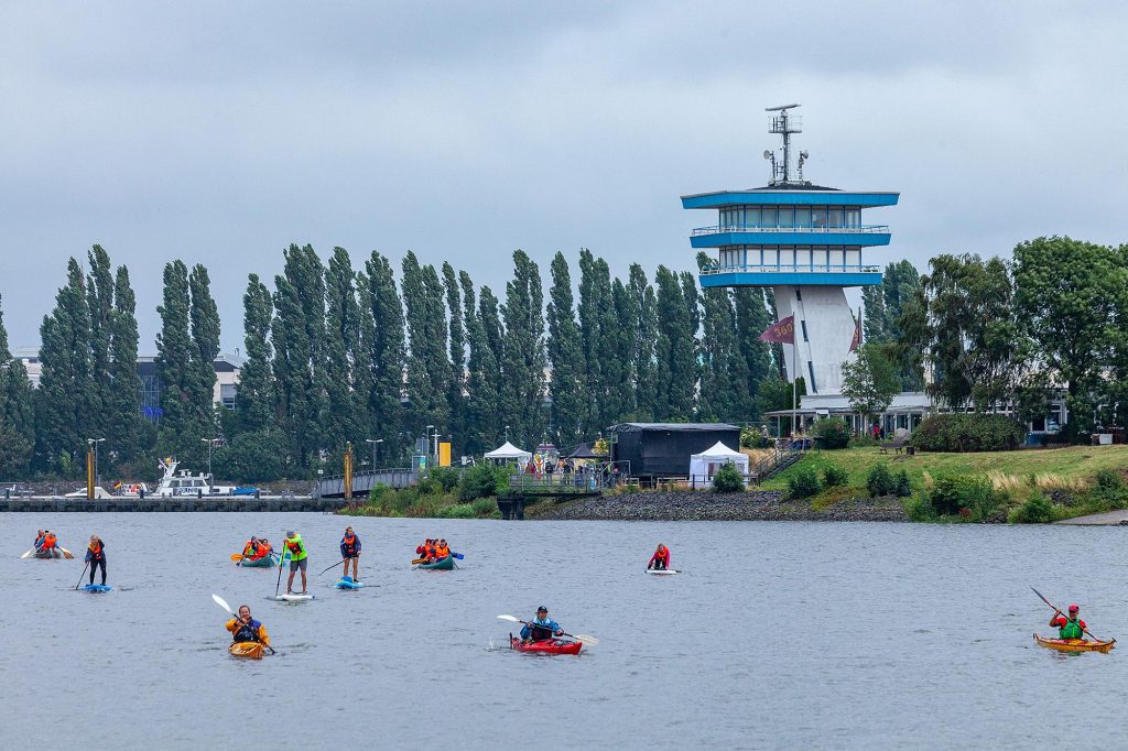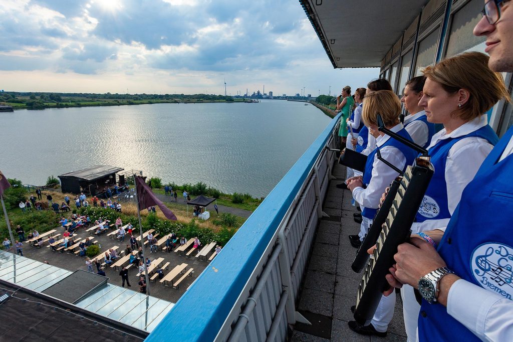 Ramona fuhr mit Interessierten am Samstag per Kanu in den Neustädter Hafen. Auch Stand-Up-Paddeling wurde angeboten. Ramon verwirklichte am Sonntag seine Wassertaxi-Idee auf einem wahrhaft großen Schiff und brachte das Publikum hin und her zum Überseetörn und zum Spiel- und Wassergarten Pusdorf, wo das Kulturhaus sein Sommerfest “Das Blaue vom Himmel” veranstaltete.
