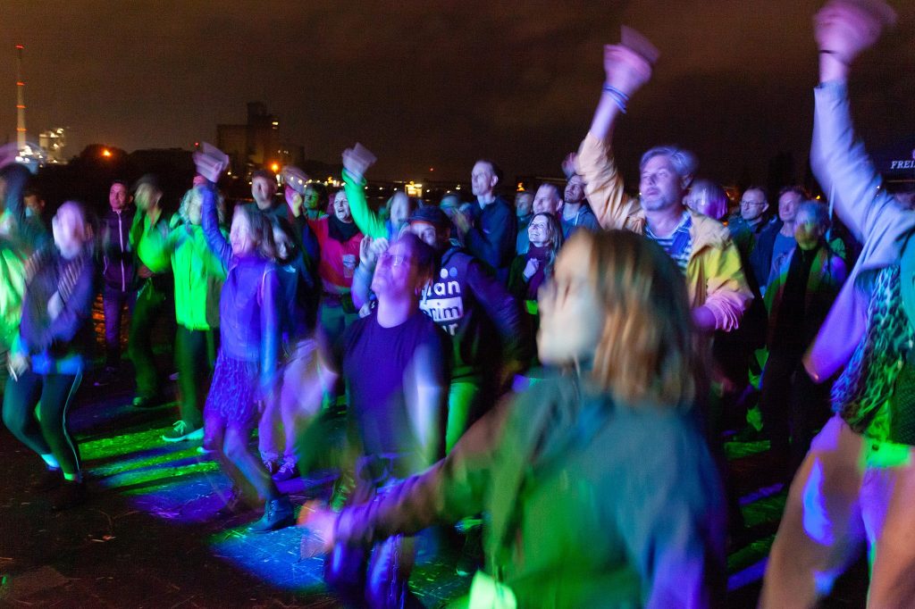 Freitag nach Sonnenuntergang luden Frauke (Wilhelm) und Walter (Pohl) zum gemeinsamen Lagerfeuer-Singen ein. Und dann wurde bis zum Morgengrauen getanzt zu Disko oder beim 360° After Rave mit GAJDA, Mauro Basso, Needles Musik, RØD und Sami Richter. Der wunderbaren Stimmung zwischen Team, Künstler*innenn und Publikum taten auch die teilweise sintflutartigen Regenfälle am Samstagabend keinen Abbruch.