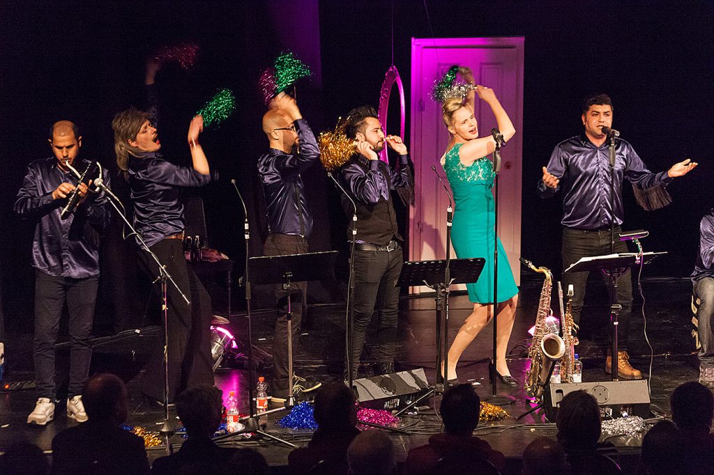 Entstanden ist eine ganz intensive, unter die Haut gehende und doch auch schwungvoll-leichte Produktion, ein Abend, in dem großer arabischer und persischer Pop auf deutschen Schlager trifft, mit Theaterszenen mit wenig Sprache und kurzen Videoclips, in denen die Geflüchteten über das sprechen, was sie bewegt.