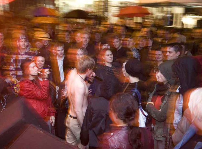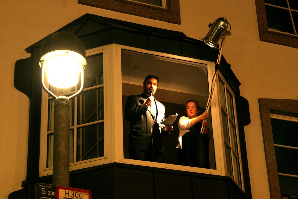 Künstler, Kaufleute, Kulturinstitutionen, professionelle Spinner und alternative Freaks, Initiativen, Unternehmer, Wirte und Anwohner: All diejenigen, die auch sonst das Viertel – unser „soziales Biotop aus Luxus, Siff und alternativem Lebensgefühl“ (WK 6.6.2010) – prägten, sollten für die beliebte 3-Tages-Sause zwischen Wallwiese und Ziegenmarkt an einem Strang ziehen. In Kommunikation mit allen und jedem wollten wir mehr Kultur ermöglichen: Aktuelle Popmusik, faszinierende Fassadenprojektionen, Fensterlesungen, Popularisierung von Wissenschaftsthemen, spannende Spiele und die Inszenierung der verschiedenen Stadträume – das „normale“ Stadtfest mit bierkompatibler Musik und Bratwurst solte kulturell aufgewertet werden.
