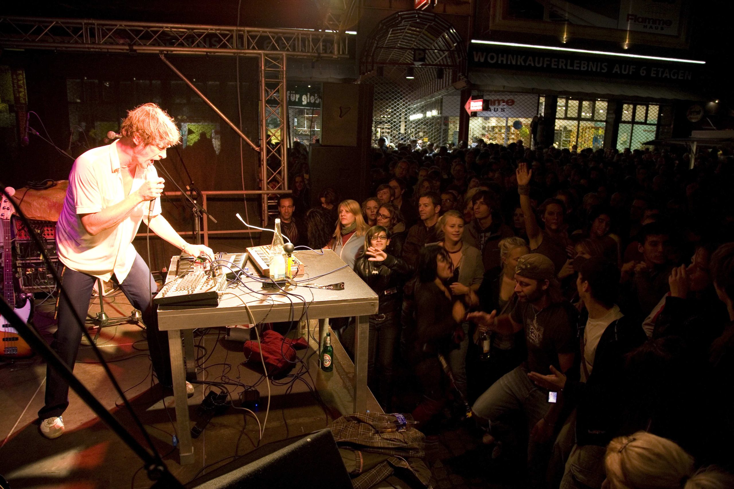 Drauf – das waren die Bühnen mit Indie-Garage-Noise-Magic-Super-Disco-Speed-Boppin-Countrykitsch-Schrägpop und Sushi-Music uf 4 Bühnen und 1 Tanzboden mit Erdmöbel, Gipsy.cz, Muff Potter, Trashmonkeys, The Pale Four, Chupacabras, Alvin Stardust
